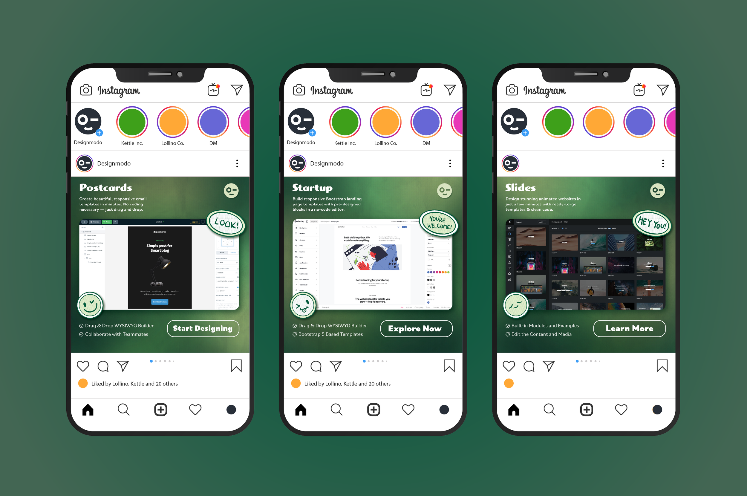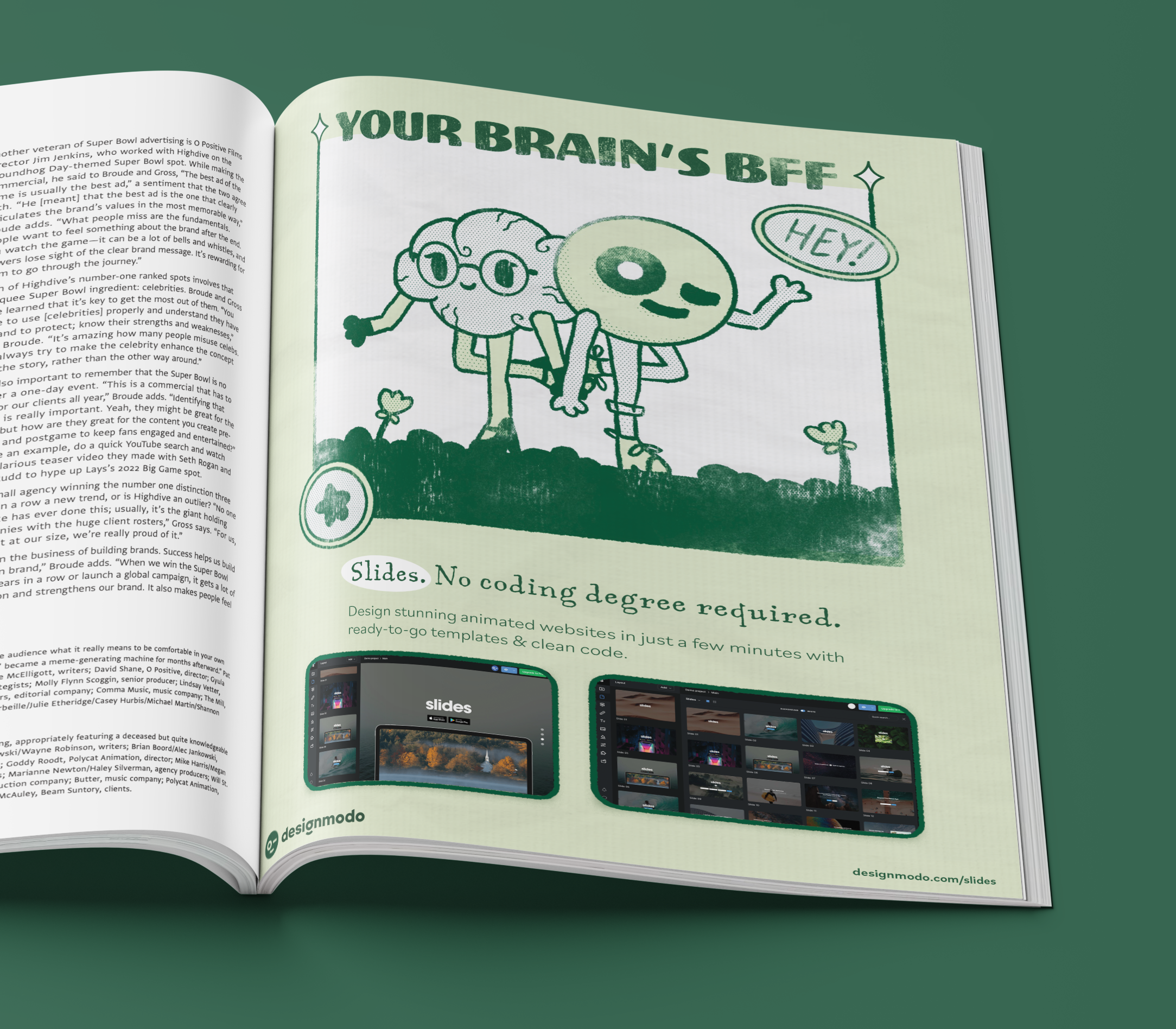 An advertisement project with the goal of taking a lesser known company and creating advertisements for them. Designmodo is a template design website for creating your own website without requiring coding knowledge. The ads focus on showing their different services as well as creatign mascots and personifying the Designmodo logo.