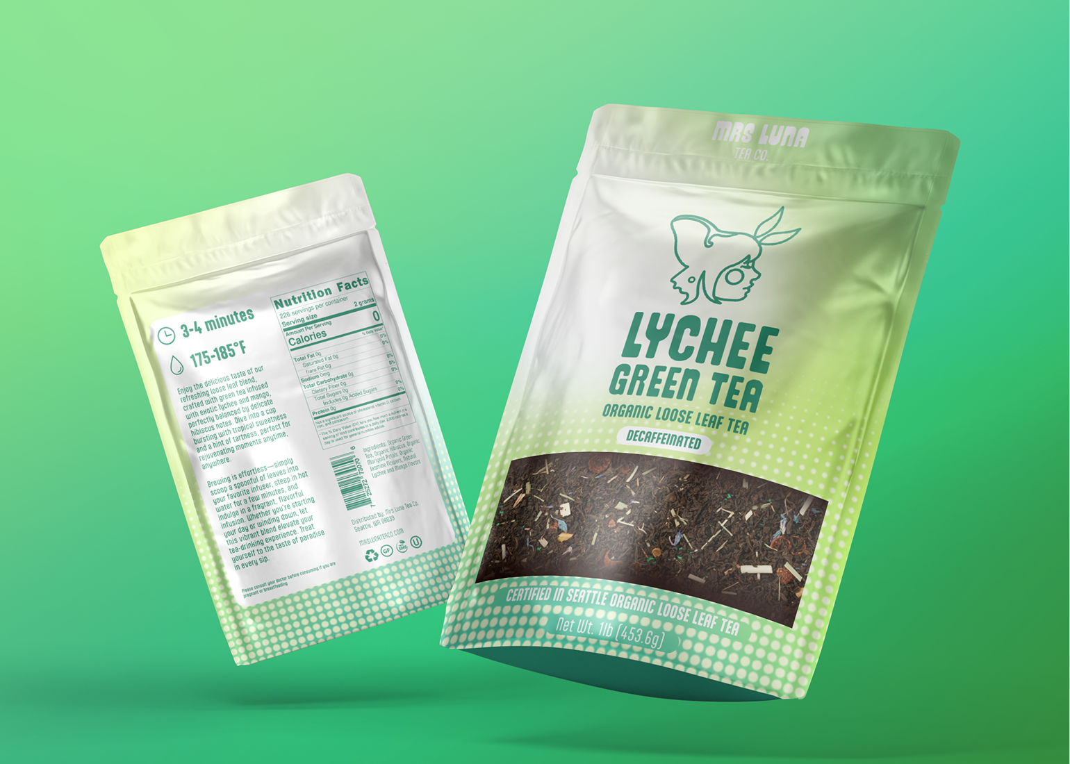 Mrs Luna A tea brand using luna moths and gradients to showcase artisan tea in multiple different container types.