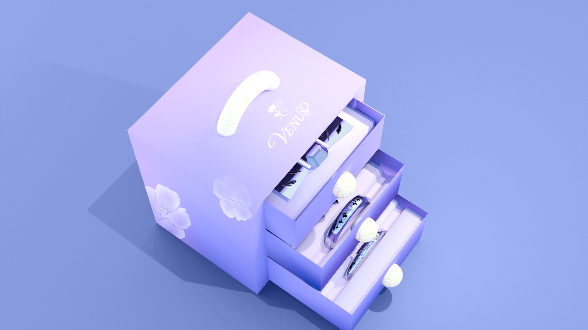 Venus is an overall brand with multiple products. First, the Violette perfume and second, a set of sterling silver rings with lavender quartz gems.